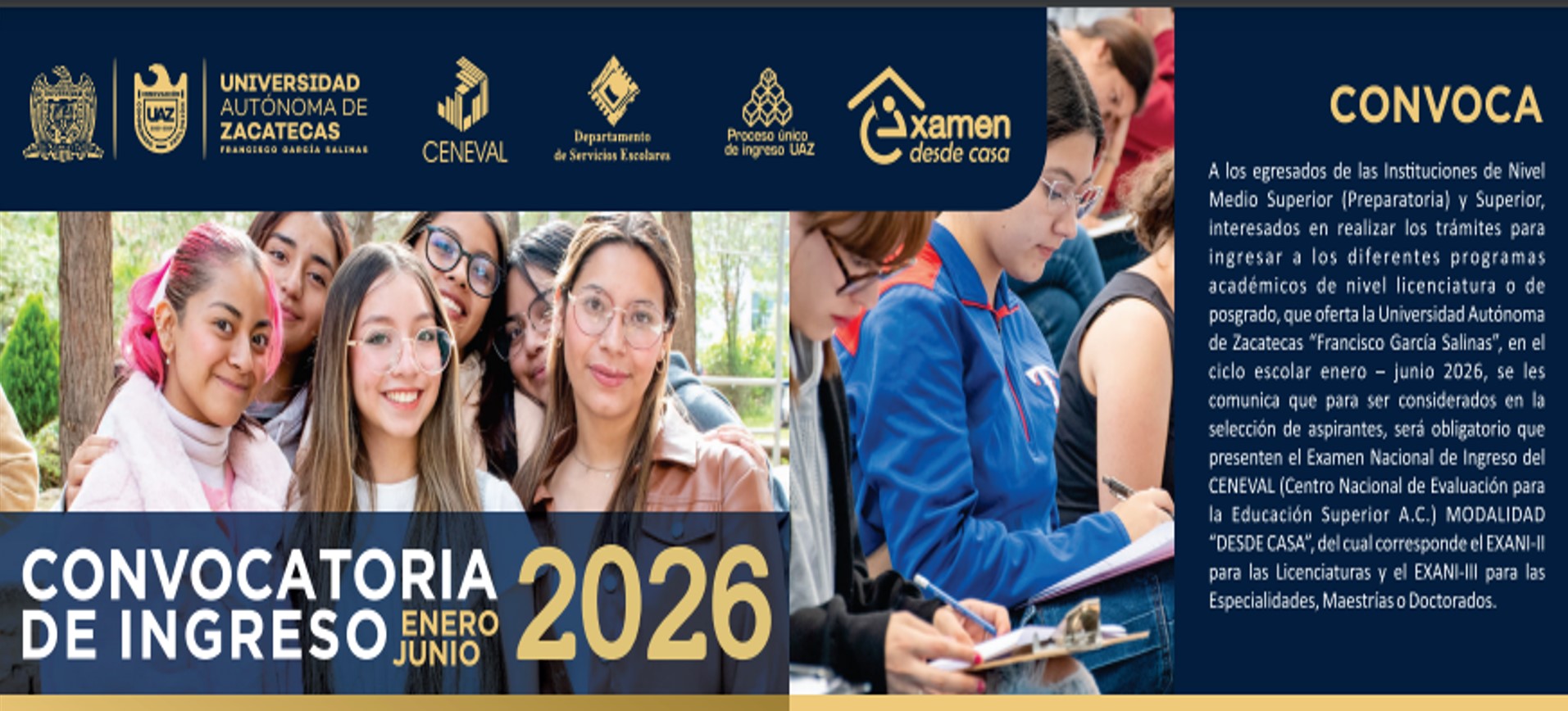 Facebook Instagram Av. Ramón López Velarde S/N, Col. Centro, C.P. 98000Zacatecas, Mexico Leer... Convocatoria para Nuevo ingreso A todos los interesados en cursar la LICENCIATURA EN DERECHO de la Universidad Autónoma de Zacatecas “Francisco García Salinas”. Te invitamos a consultar la CONVOCATORIA DE INGRESO. Calendario de exámenes Ciclo escolar enero – julio 2025 Escolarizado Zacatecas Semiescolarizado Zacatecas